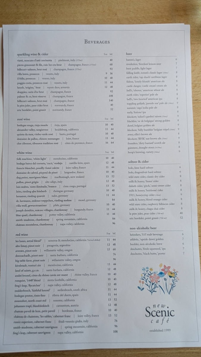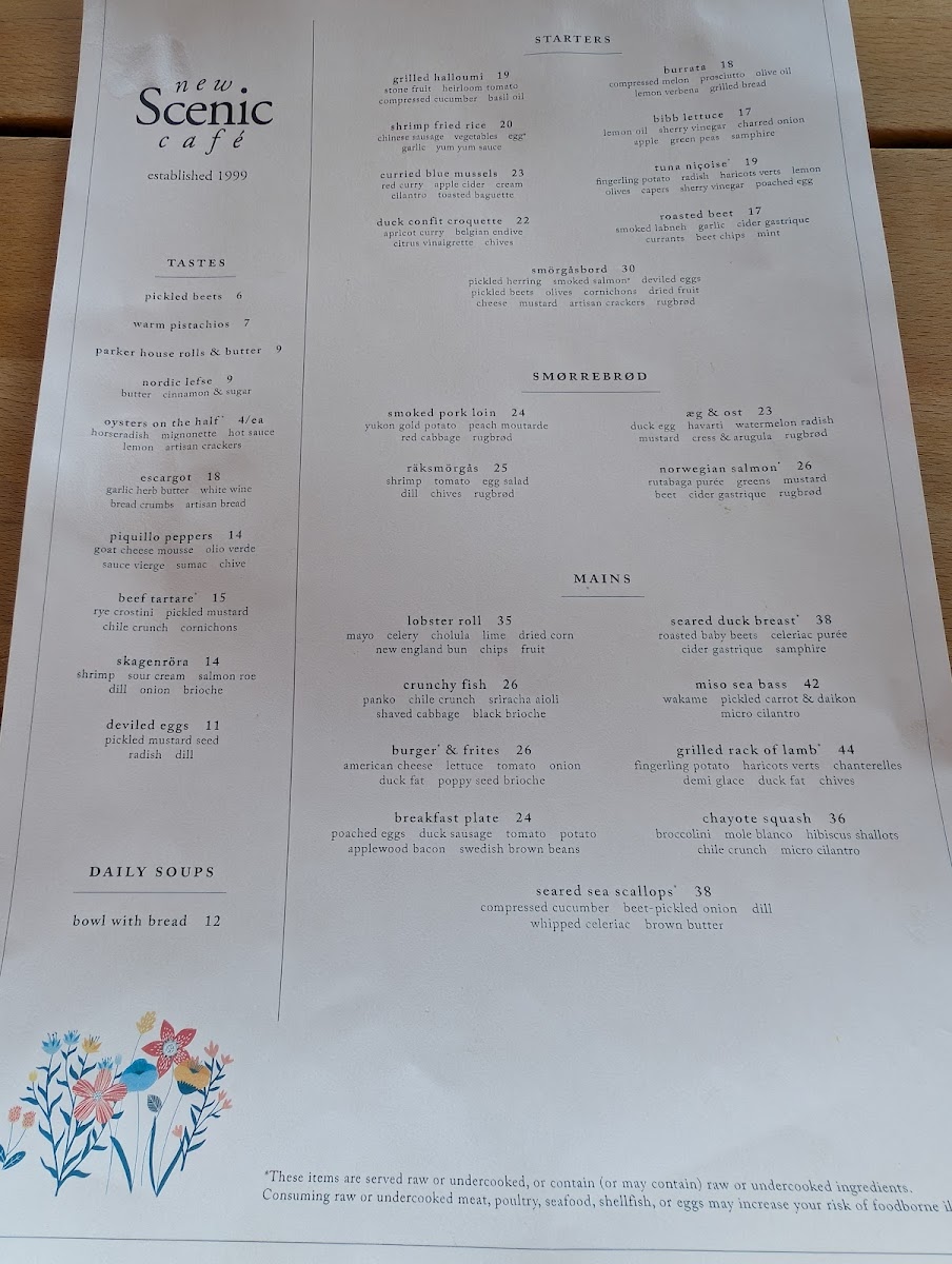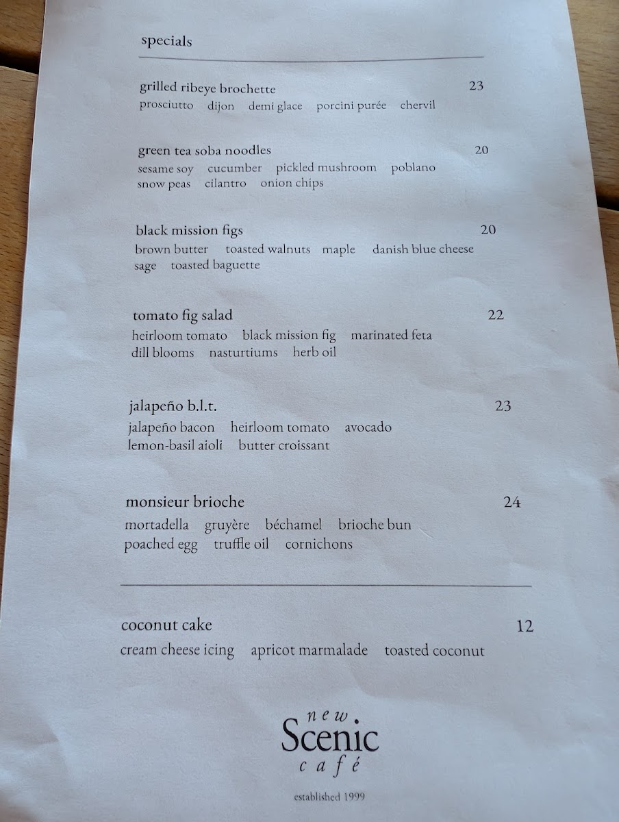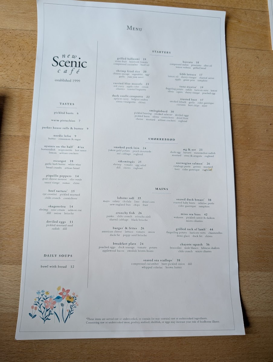 New Scenic Café Menu