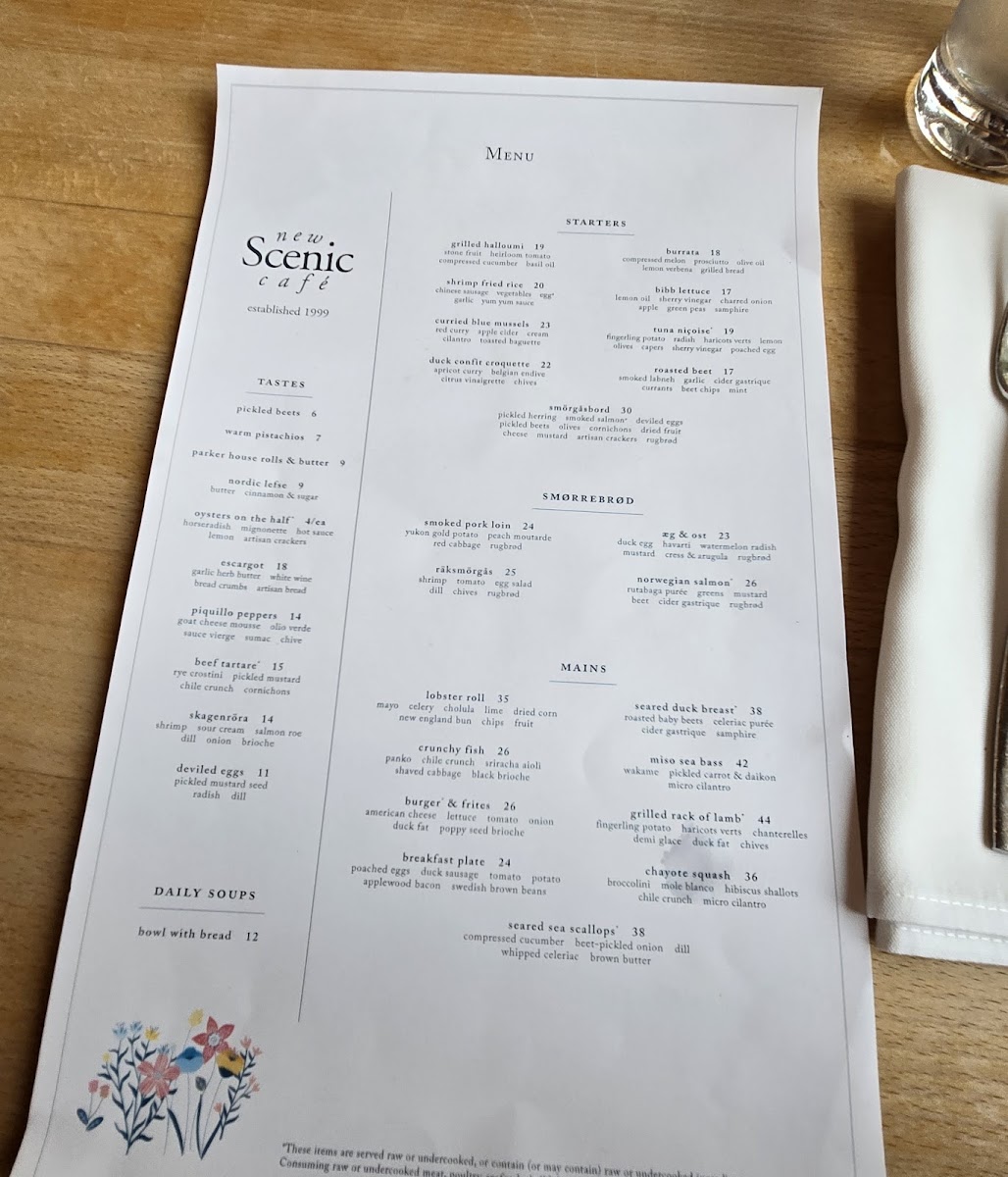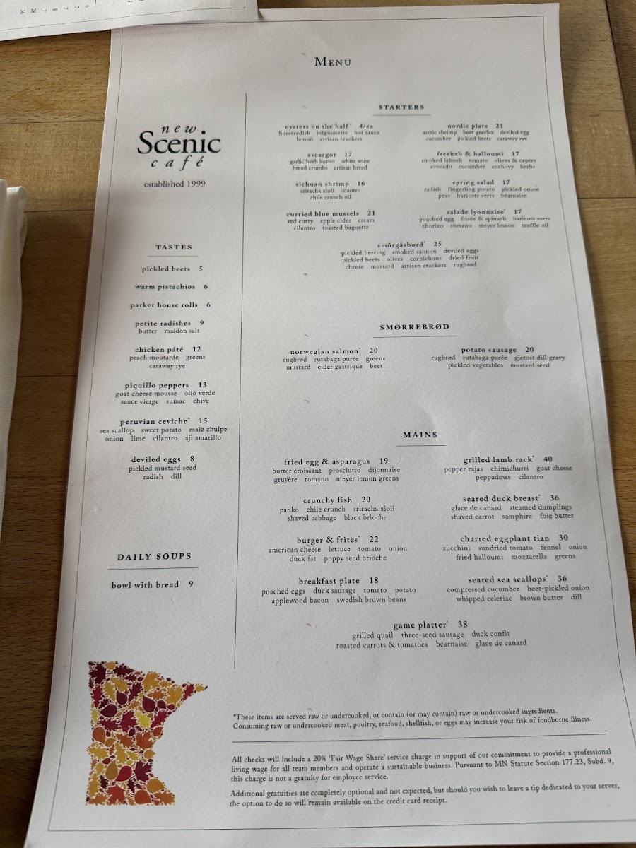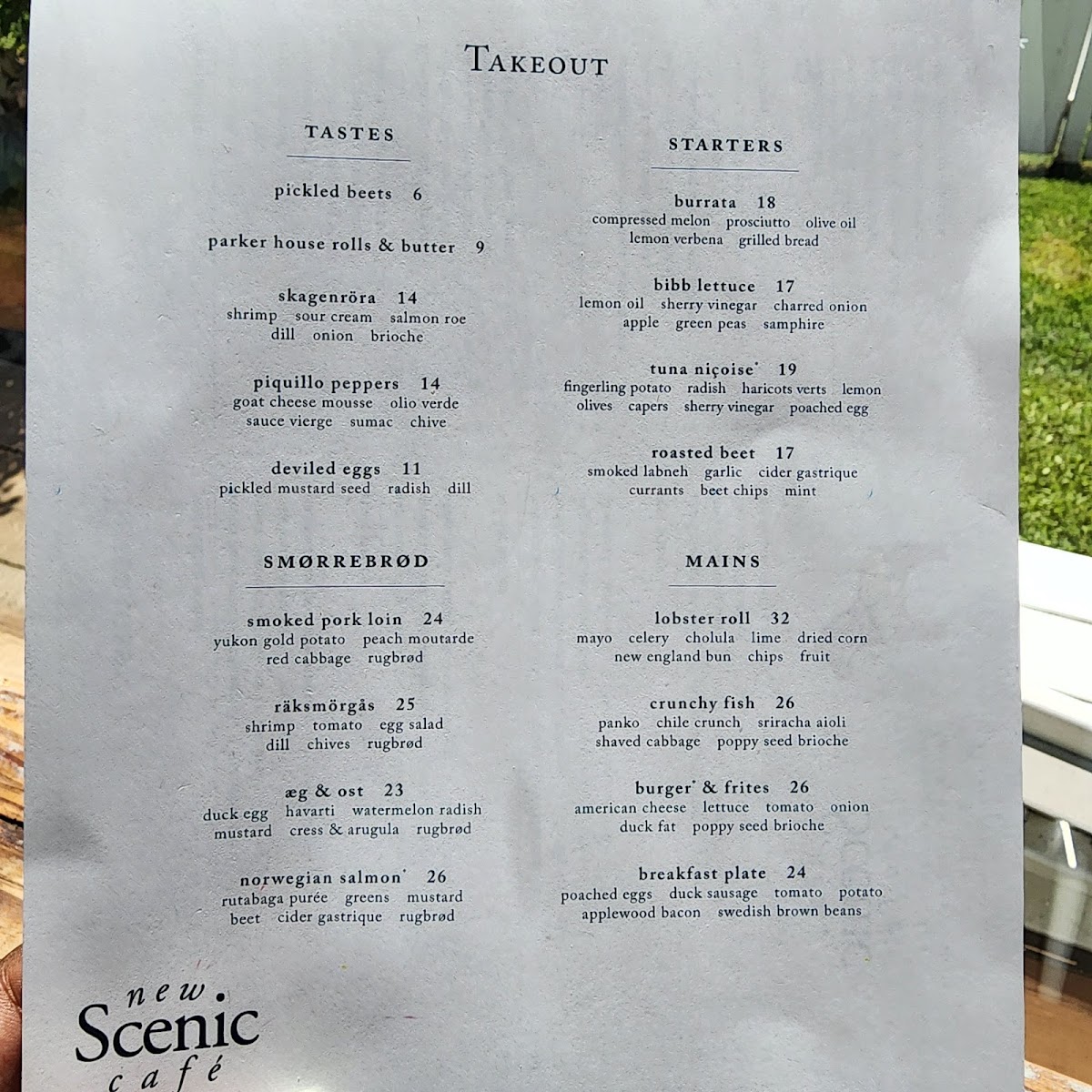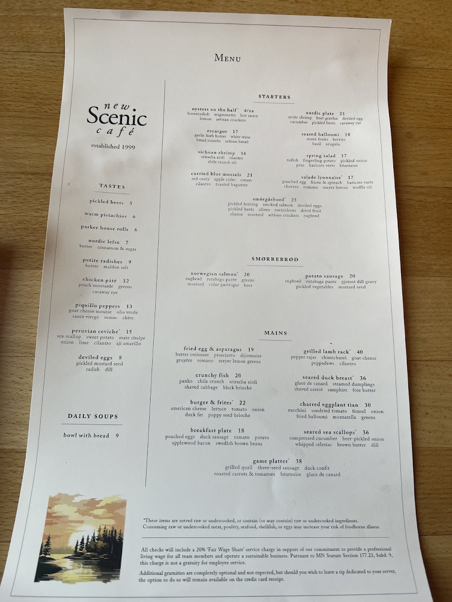 New Scenic Café Menu